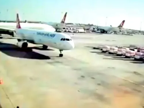 Două aeronave pline cu pasageri s-au ciocnit pe Aeroportul Atatürk din Istanbul, potrivit jurnaliștilor de la Times of Malta. În imaginile surprinse de una dintre camerele de supraveghere se vede cum un avion care urma să decolaze şi altul care abia aterizase, s-au ciocnit în timpul rulării pe o pistă a aeroportului din Istanbul. În urma impactului, coada unuia dintre ele s-a rupt.