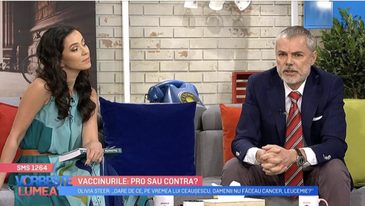 Olivia Steer și mediul Mihai Craiu s-au aflat față în față joi dimineața, la emisiunea ”Vorbește lumea”, de la ProTV. Olivia era contra vaccinurilor, medicul venise acolo pentru a aduce argumentele că acestea sunt OK. Iar în final, Mihai Craiu a pus-o la punct pe soția lui Andi Moisescu.