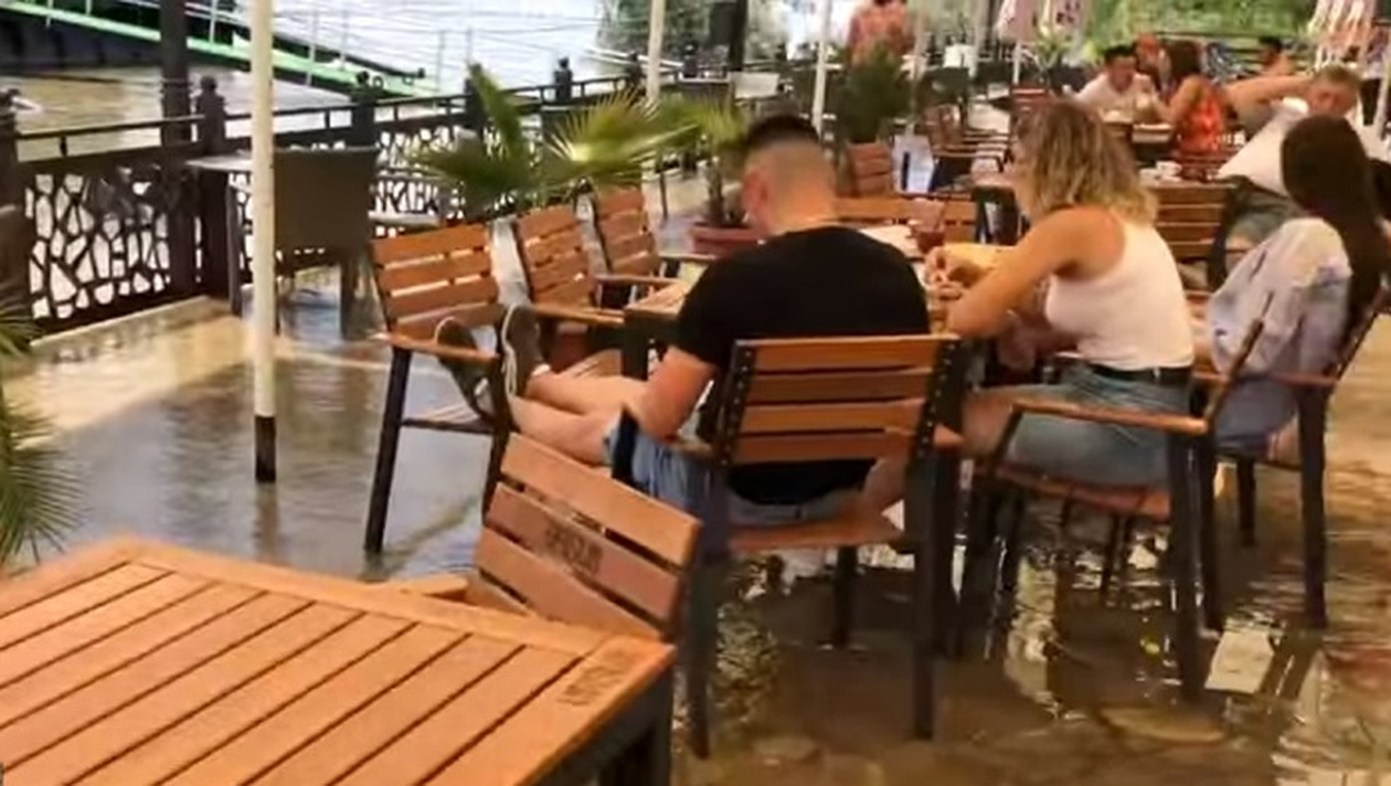 Patronii nu au închis terasa. Locația este deschisă pentru amatorii de senzații tari, care vor să fie serviți într-un bar pe apă.