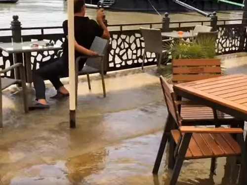 Este prima dată când terasa situată pe malul Dunării se inundă. Fluviul nu a mai crescut niciodată atât de mult, încât să ajungă la nivelul barului și chiar să-l depășească, inundând amplasamentul.