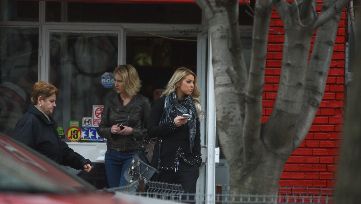Cele doua prietene traverseaza strada, in timp ce Groza le privea din masina