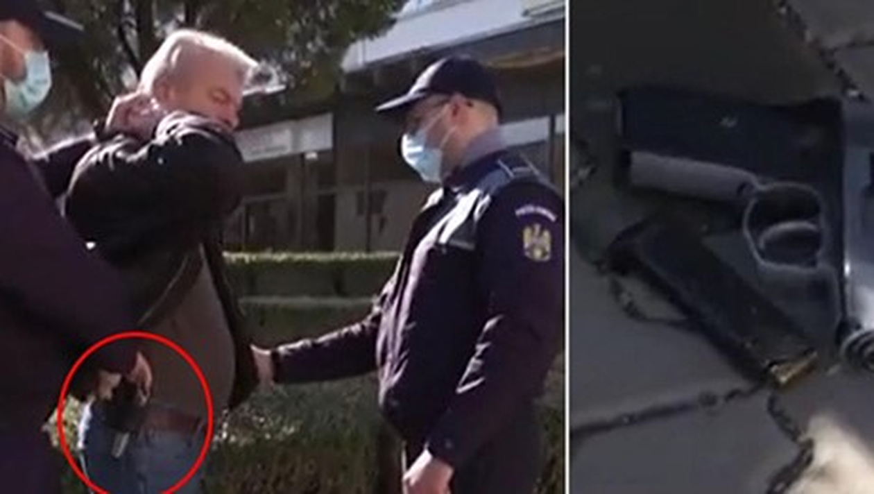La percheziție, polițiștii au descoperit că bărbatul era dotat nu numai cu pistolul, ci și cu un cuțit. Luat la întrebări, oneșteanul a explicat că umbșă înarmat pentru că se simte în pericol, după ce a fost victima unui furt. Mai mult, a recunoscut că are patru arme pe care le poartă din plăcere că aşa e normal.