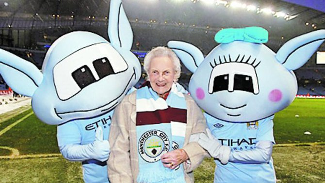 PASIUNE. Cine credea ca Manchester City, formatia care s-a ridicat in ultimii ani in topul Premiership dupa investitiile de sute de milioane de lire sterline ale seicilor arabi, nu are suporteri s-a inselat. Un exemplu in acest sens il constituie Celia Hodkin. Ajunsa la venerabila varsta de 88 de ani, aceasta este sustinatoarea „cetatenilor” din 1933. Pentru a-i arata respectul pe care i-l poarta clubul, oficialii celor de la City i-au oferit sansa sa fie mascota echipei la meciul cu Fulham din ultima etapa, dar si sa mearga la vestiare pentru a-i cunoaste pe elevii lui Mancini si pentru a primi o minge cu autografelor acestora.