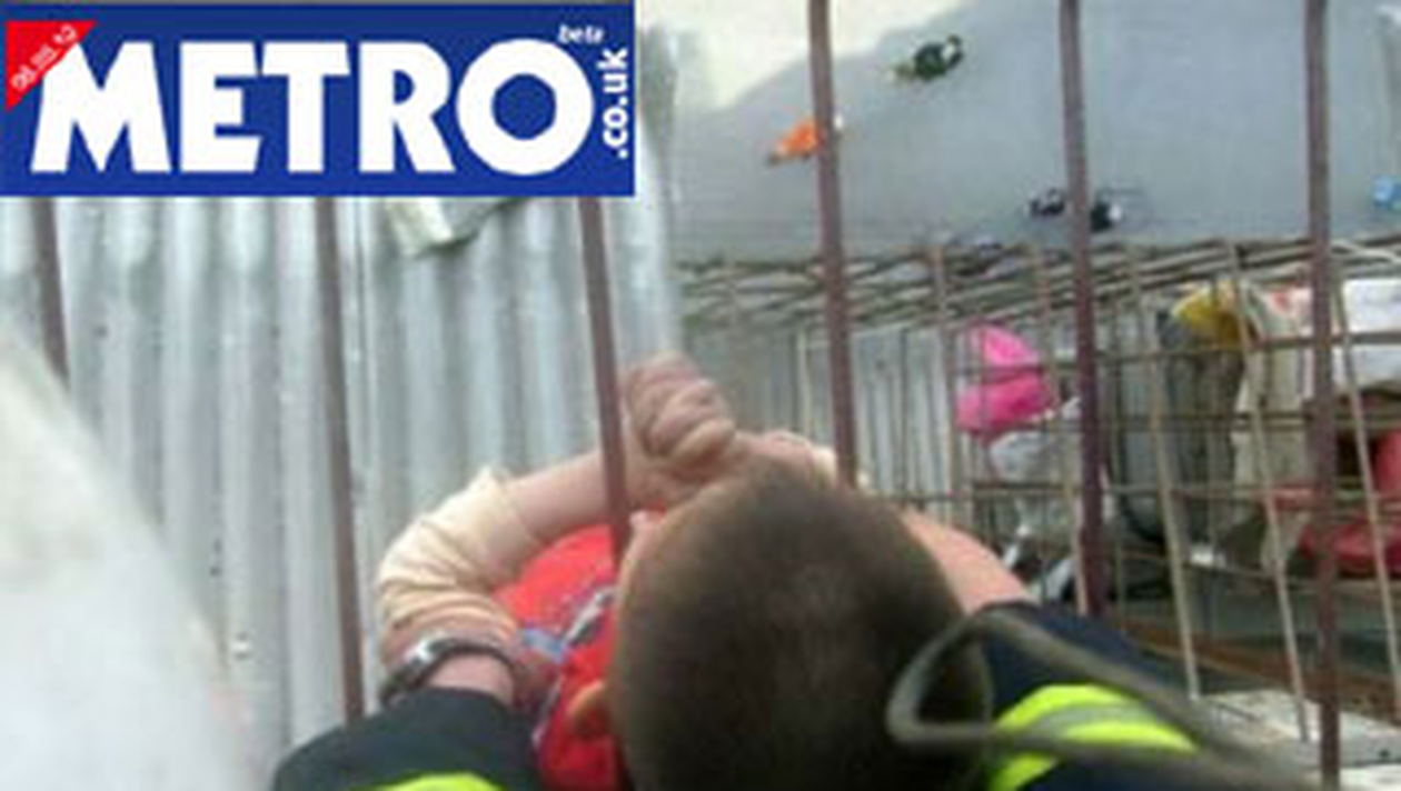 Trecatorii au vazut cum la etajul superior al unei cladiri din China se balanseaza un copil printre gratiile balconului. Inspaimantati au chemat imediat echipajele de salvare care au reusit sa il scoata la timp pe baiatul cu urechi mari dintre fiarele care l-au tinut in viata, se arata pe metro.co.uk.