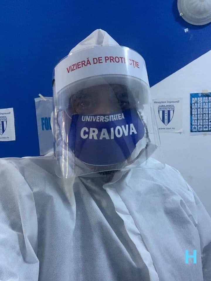 „Așa luptă împotriva COVID-19 domnul doctor Hoshang Heedari”, au remarcat oficialii Universităţii Craiova. Medicul are mască chirurgicală cu însemnele echipei favorite.