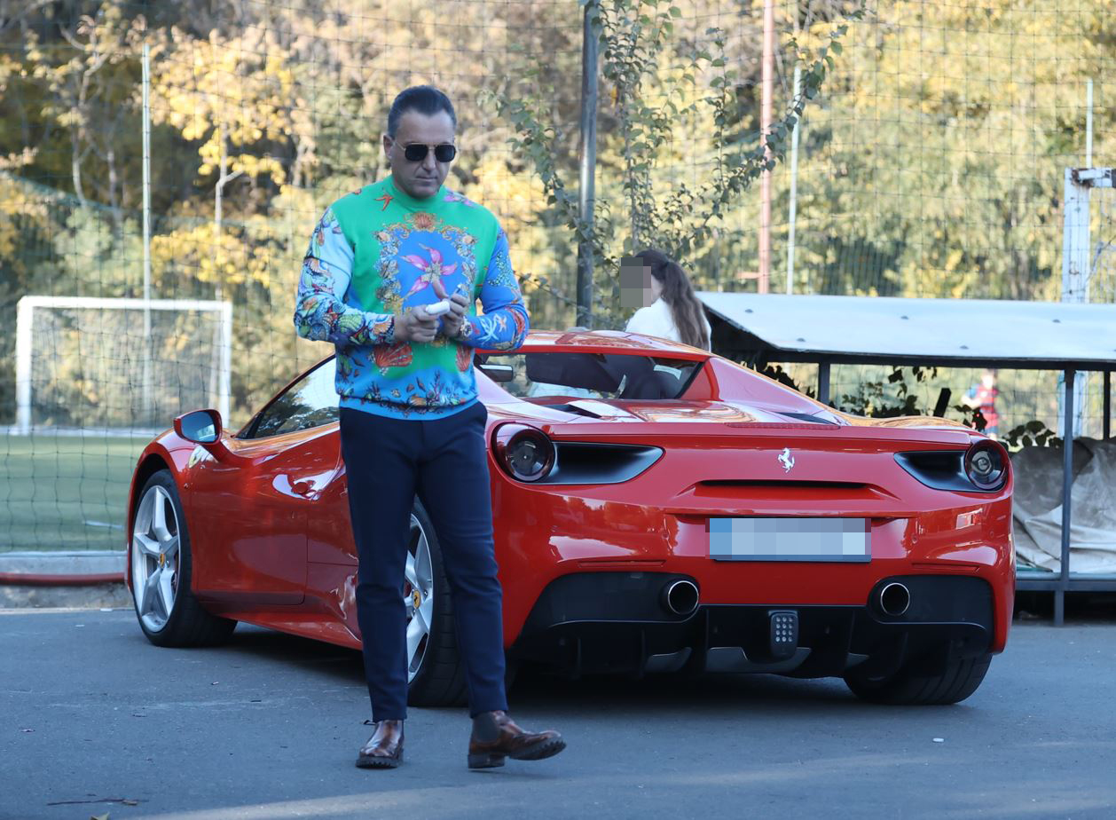 A coborât dintr-un Ferrari 488 GBT, care valorează în jur de 285.000 de euro. Bolidul are 660 CP și este prevăzut cu motor V8 cu două turbine. „Furia roșie” era „țiplă” și a devenit imediat atracția principală pentru cei aflați în zonă. Îmbrăcat elegant, așa cum stă bine unui milionar de teapa sa, Lorenzo Dimagli s-a plimbat pe lângă „bijuterie”, în timp ce-și butona telefonul.