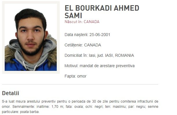 Ahmed Sami El Bourkadi, originar din maroc, student la UMF Iași, este principalul suspect în cazul dublei crime de la Iași. Tânărul a fost dat în urmărire internațională.