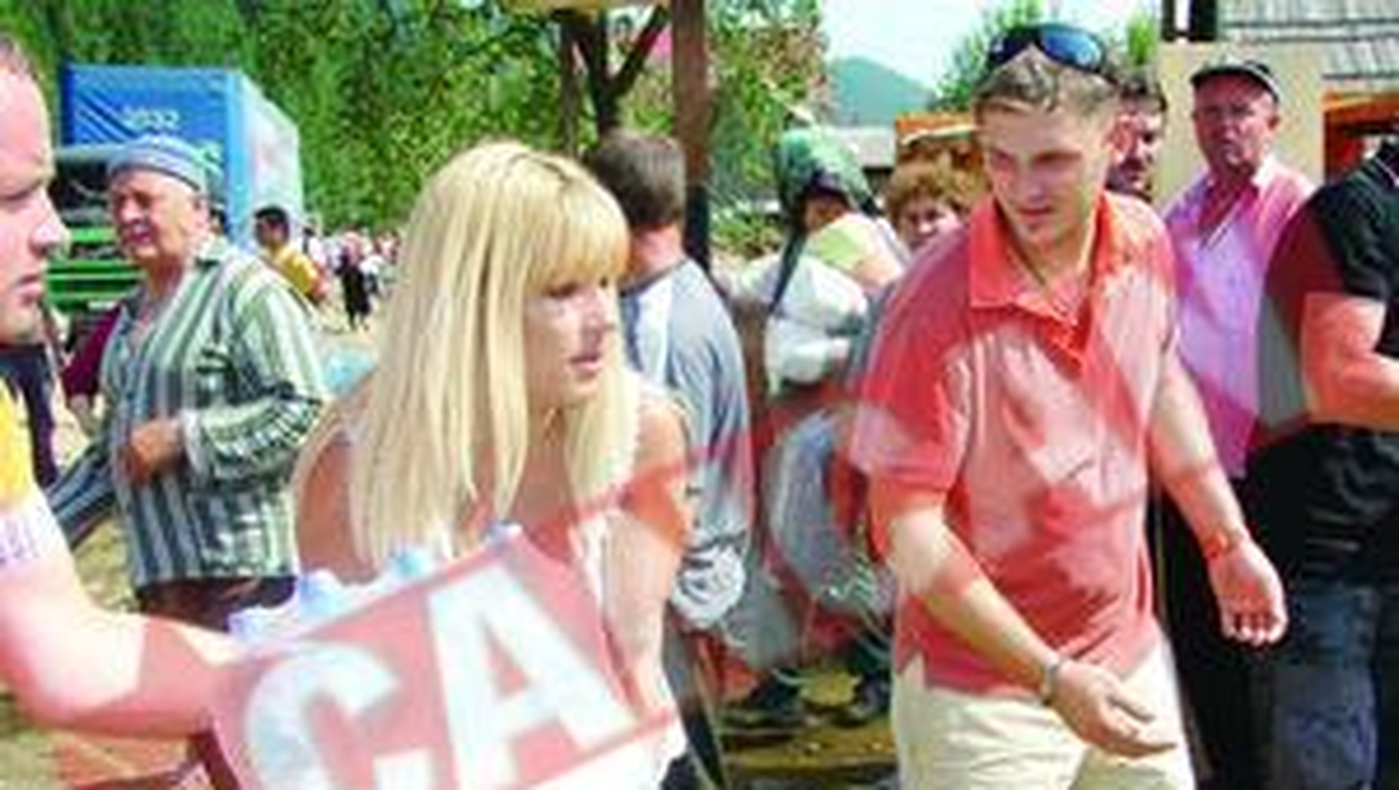 IN FLAGRANT. Unul dintre cei care au impartit pachete, surprins in timp ce tragea cu ochiul la formele apetisante ale Elenei Sacrificiu. Blonda de la PD-L a intrat in noroi sa imparta ajutoare sinistratilor din Suceava Claudiu Sandu, Luana Buga Secretarul executiv al PD-L, Elena Udrea, a muncit din greu la impartirea ajutoarelor pentru sinistratii din judetul Suceava. Impreuna cu presedintele organizatiei judetene PD-L, Gheorghe Flutur, blonda a dat startul la distribuirea celor 39 de tir-uri cu imbracaminte si alimente. „Am vrut sa fim solidari cu cei care au suferit enorm de pe urma inundatiilor”, a declarat Udrea. Imbracata cu bluza de in de culoare alba si pantaloni trei sferturi, ea a renuntat la balerini in favoarea unor cizme de cauciuc, pentru a razbate prin mocirla din curtile sinistratilor. Chiar si asa, barbatii au profitat de prezenta sa in carne si oase pentru a o admira indelung. Sinistratii au primit haine, saci de dormit, paturi si alimente. „Chiar daca a fost o zi grea, pentru ca am fost in zone greu accesibile, efortul a meritat”, a conchis Udrea.