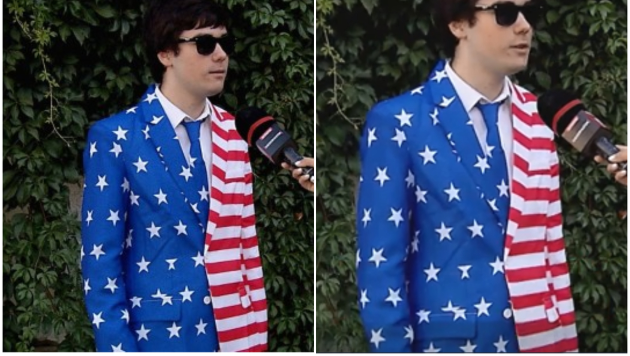 Un tânăr ce astăzi a început clasa a XII-a la un prestigios liceu din Capitală a atras atenția multora. Acesta a ales o ținută specială pentru festivitatea de început de an, iar toți ochii au fost pe el. Mai exact, băiatul a decis ca în prima zi de școală să poarte un costum atipic. Acesta a fost îmbrăcat într-o ținută ce avea imprimată, din cap până în picioare, steagul Americii.