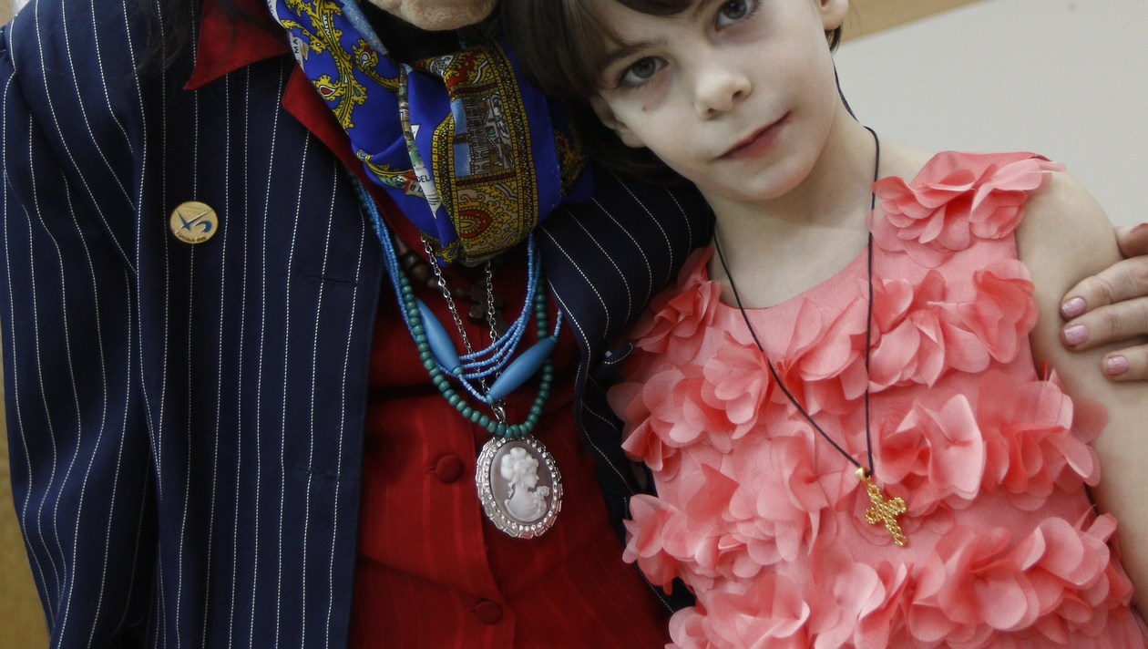 Eliza, fiica Adrianei Iliescu (74 de ani), cea mai batrana mama din Romania, a implinit astazi 8 ani. Micuta si-a aniversat ziua de nastere la scoala, alaturi de colegi, de profesori, dar si de mama sa.
