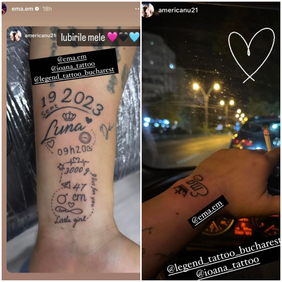 Răzvan a vrut să își exprime iubirea pentru cele două într-un mod inedit. Așa că acesta a mers la salonul de tatuaje, iar pe un braț și-a tatuat numele fetiței sale, în timp ce pe alt braț a inscripționat numele Emei.