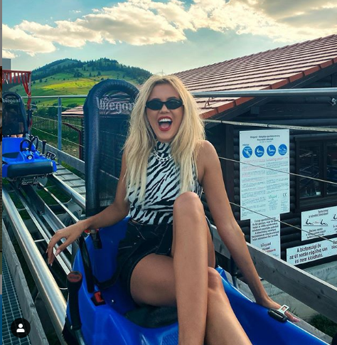 ”Distracția din PressTrip-ul de la Harghita a început cam așa! Mă simt norocoasă că fac parte din acest proiect fantastic, al cărui scop este chiar promovarea României! O să vă arăt cele mai frumoase atracții turistice din zonă. Vă puteți planifica o vacanță de nota 10 cu ponturile pe care o să le ofer așa că fiți pe fază! Este pentru prima dată când mă dau cu un bob de vară și vreau să vă spun că m-am distrat maxim! 600 m urcare, 1300 m la coborâre cu o viteză de până la 42 km, toate astea pe UN MUNTE! Tare sau ce? ”, a scris Emily️ pe Insta.