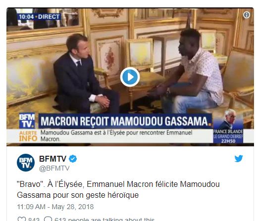 Mamoudou Gassama va fi angajat la Brigada de Pompieri și, de asemenea, a primit și medalia de onoare din partea președintelui Franței.