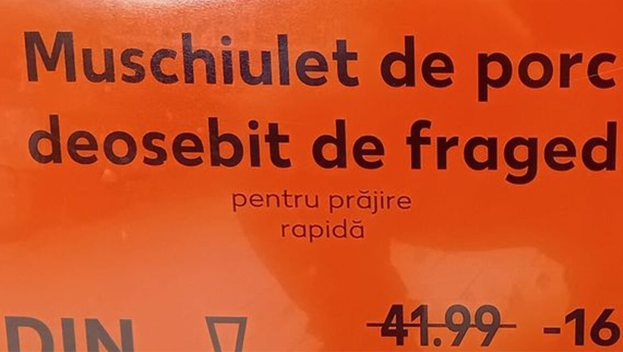O fotografie care prezintă eticheta cu informații despre promoția la carne de porc – vândută într-un supermarket Kaufland din România – a devenit virală pe o rețea de socializare. Inspectorii Asociației pentru Protecția Consumatorilor (ANPC) s-au autosesizat după ce s-au oprit la standul în care se vinde carne și au constat informațiile de pe anunț. Cât costă, de fapt, 1kg de ”mușchiuleț de porc deosebit de fraget”.