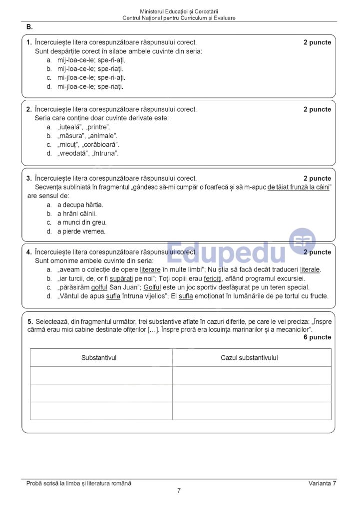 Vezi AICI ce subiecte au picat pentru școlile și secțiile cu predare în limba maghiară.