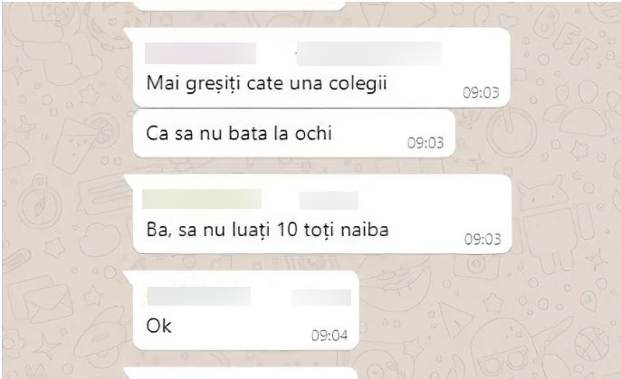 Examenul de licență de la Autoritatea Aeronautică Civilă Română a fost, la rândul lui, fraudat. Cum au făcut-o? Au fotografiat testele grilă de pe foile din sală, le-au postat pe grupul WhatsApp, iar persoane de pe telefoane din afara clădirii le-au dat răspunsurile corecte.