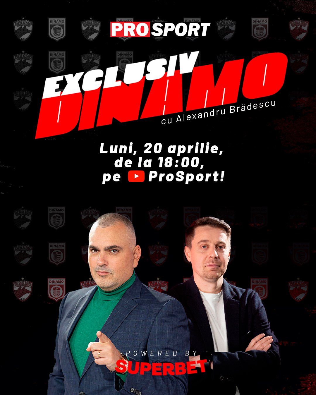 Azi, luni, de la 18.00, o nouă ediție „Exclusiv Dinamo”, show-ul ProSport dedicat „câinilor roșii”, în direct pe canalul de YouTube ProSport și pe Facebook ProSport.