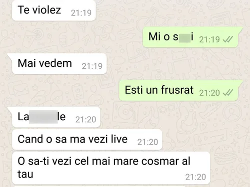 În timp ce ar încerca să o readucă în viaţa lui pe Cruduţa, Radu ar vrea şi să se răzbune cu orice preţ pe prietenul lui şi nu ar fi ezitat să îl ameninţe. “Când o să mă vezi live, o să-ţi vezi cel mai mare coşmar al tău, o să te filmez pi***du-mă pe tine, ţigan borât din Giurgiu. Te violez p***o, îţi dau la m**e ca în ‘98”, sunt doar câteva dintre ameninţările pe care tânărul de 24 de ani i le-ar fi adresat lui Răzvan de la Giurgiu, potrivit mesajelor intrate în posesia noastră.