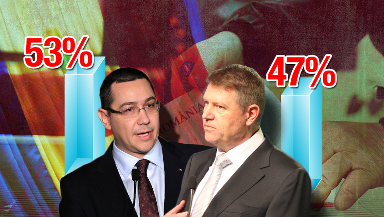 Actualul premier are deja un scor de 53%, in timp ce candidatul ACL, Klaus Iohannis, se claseaza pe locul al doilea cu 47%. Pana acum au votat peste 44% dintre romani.