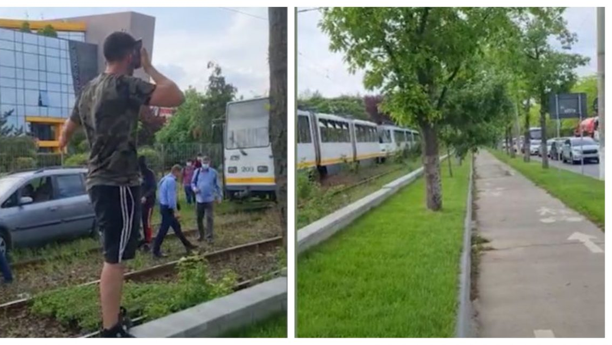 Un tânăr șofer din București a reușit să fie protagonistul unei situații inedite, în trafic. Mai multe persoane s-au străduit să îi mute mașina, care se blocase tocmai pe linia de tramvai.