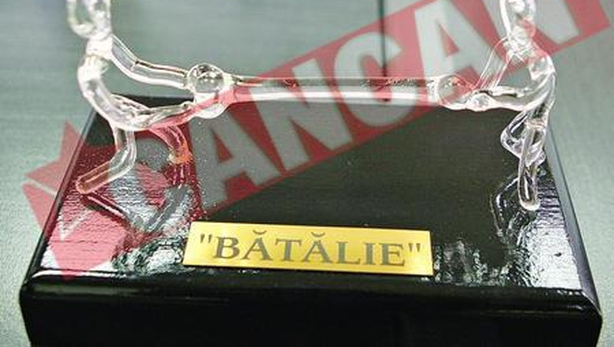 IDEE. Politicienilor care au simtul umorului, organizatorii le propun un cadou cu mesaj sugestiv INEDIT. O sculptura care ilustreaza lupta pentru acelasi os poate fi un dar amuzant pentru un rival din clasa politica ADRIANA POPESCU Politicienii romani au motive in plus sa se bucure sau, dupa caz, sa se sperie. Depinde de cadourile pe care le vor primi de acum inainte, iar in acest sens sugestiile sunt destule. Primul concurs de cadouri pentru politicieni, organizat la Romexpo, a debutat, ieri, cu expunerea celor 55 de piese, structurate pe trei sectiuni: „Cadoul politicianului jucator”, „Cadoul politicianului european” si „Cadoul politicianului din Opozitie”. Am remarcat printre acestea o mana din plastic, menita sa aplaude initiativele legislative si un bol cu ciocolatele personalizate, in functie de starea fiecarui politician: „delasator”, „infatuat”, „resemnat” etc. Drept daruri pe care politicienii si le pot oferi intre ei sunt doi soldatei din sticla care se bat sau alti doi care isi dau mana. Lista ar putea continua cu un ceas „care isi schimba viteza la patru ani”, un steag sugestiv intitulat „Noua ni se falfaie!” etc.
