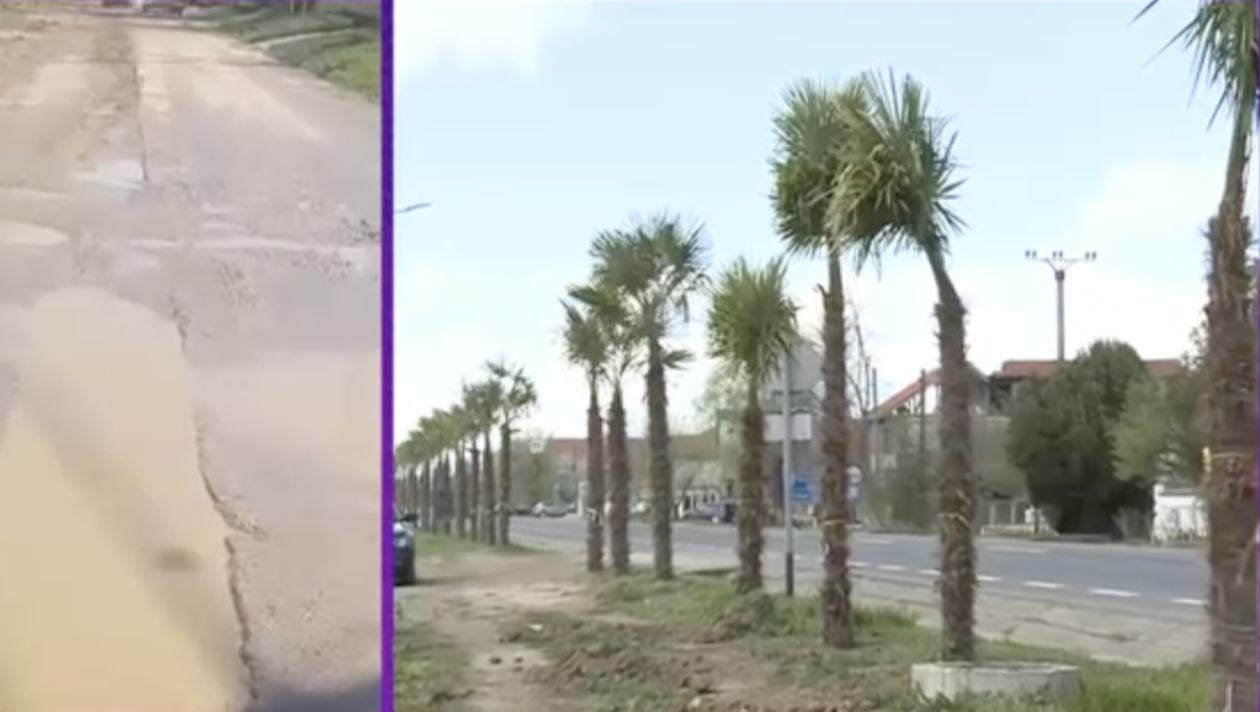 Palmieri, în loc de asfalt! Se pare că ușor, ușor România se va umple de copaci exotici. Primarul unei comune din județul Mehedinți a schimbat peisajul rural prin plantarea palmierilor pe marginea drumurilor. Asta în ciuda faptului că localitatea are nevoie să fie asfaltată. Alocând 100.000 de lei din bugetul local, acesta a preferat să înlocuiască corcodușii autohtoni cu copacii exotici, inspirându-se din peisajele din vacanțele sale peste hotare.