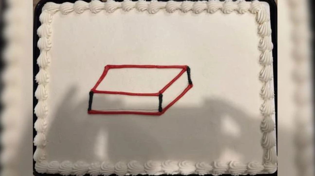 În locul tortului personalizat, acesta a primit un altfel de tort, ce arată ca o placă albă, cu o figurină a schiței sale, în centrul acestuia.