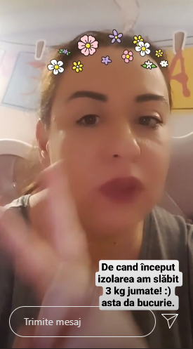 ”Sunt foarte fericită, pentru că astăzi m-am cântărit și ce credeți? Decând a început izolarea mease fac aproape două săptămâni, am slăbit trei kilograme! Deci am slăbit trei kilograme într-o săptămână jumătate. Asta și pentru că Iza (n.r fiica) a fost foarte bolnavă și a făcut o amigdalită foarte nasoală și mi-a făcut febră și frisoane și puroi în gât. Și a trebuit s-o păzesc și să am grijă de ea. Concluzia este că nu am dormit și aproape că nu am mâncat nimic sau, mă rog, foarte, foarte puțin și atunci am slăbit trei kilograme. ” a transmis Oana Roman într-un filmuleț pe Insta Story.