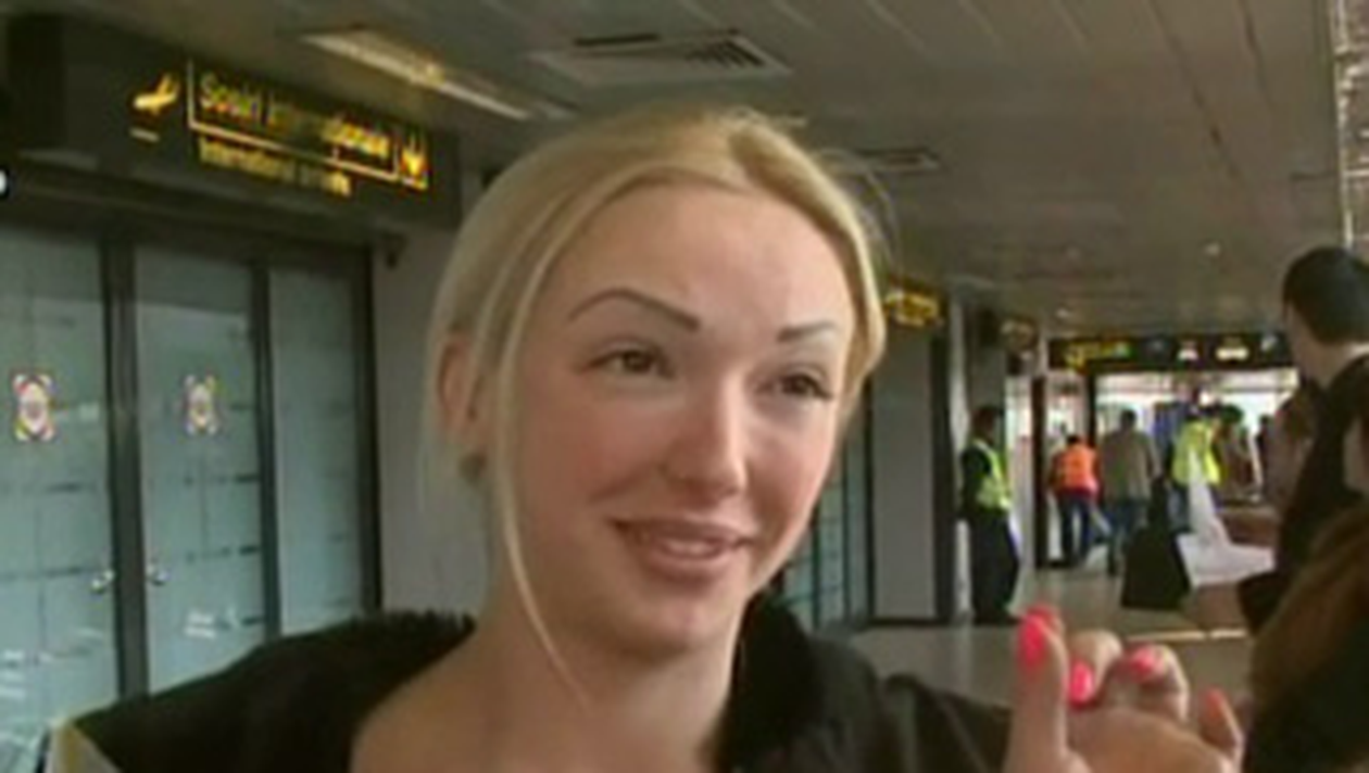 Intoarsa in Romania dupa 2 ani, Carmen Harra a venit insotita de fiica ei cea mica, Alexandra, care a cam uitat limba romana si a incercat sa ofere un interviu la sosirea in tara combinand limba engleza cu cea materna.