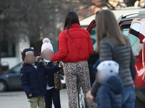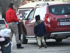Elena Băsescu i-a luat pe Sofia și Traian de la grădiniță, iar micuții, foarte plini de energie, au țopăit până la mașină. Au intrat, fără nicio problemă, în autoturism, sub atenta supraveghere a mămicii lor, care nu i-a scăpat nicio clipă din ochi.