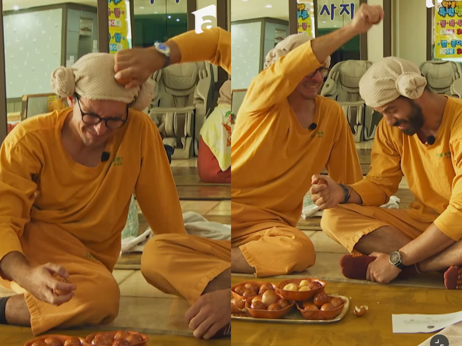 UPDATE: 21:40 – Pe lângă probele tensionate și stresante, Dan Alexa și Gabi Tamas nu au uitat de simțul umorului. Au ajuns la următoarea misiune, unde a trebuit să își spargă (unul altuia) 30 de ouă fierte în cap, așa cum obișnuiesc localnicii, apoi să le curețe de coajă.