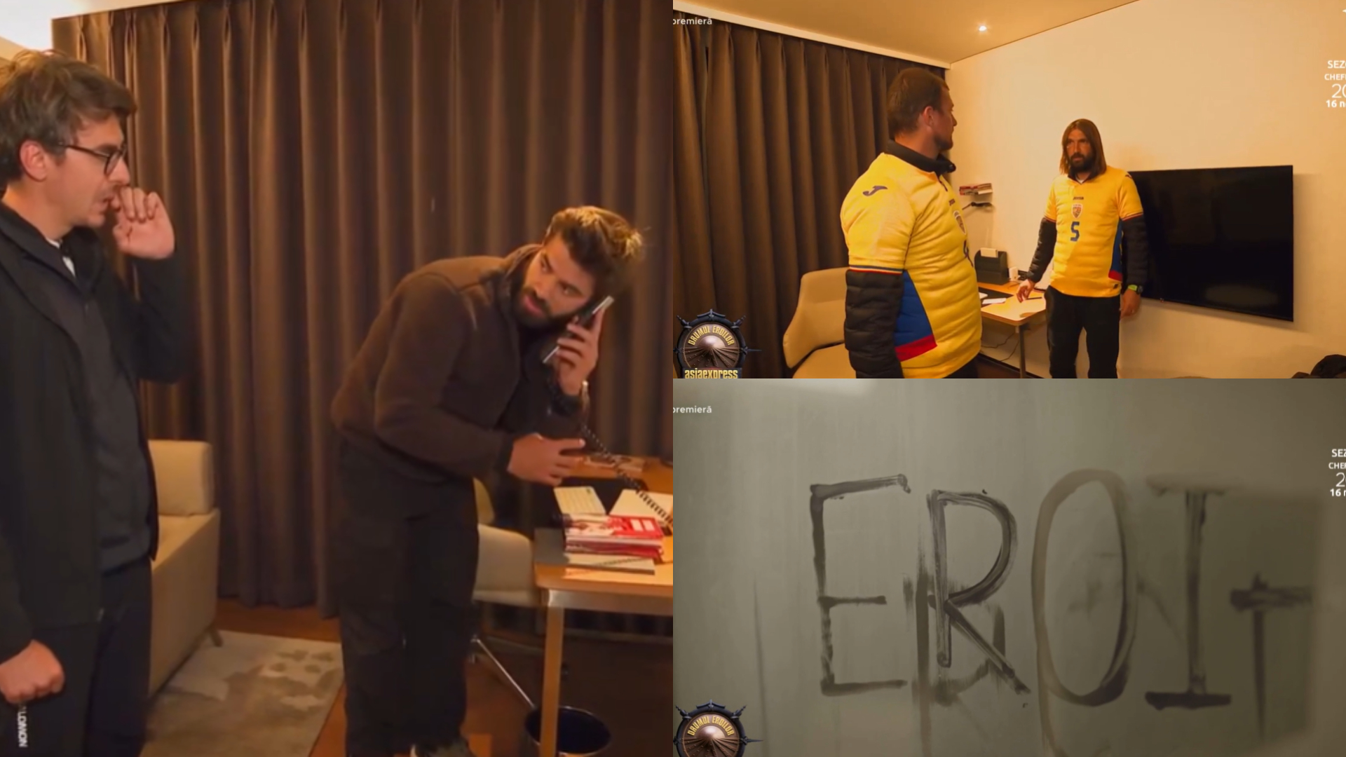 UPDATE 23:30 – Concurenții au ajuns într-un hotel unde au fost întâmpinați de un robot – care i-a condus în camera de hotel. Acolo au avut misiunea de a găsi mai multe indicii pentru a descifra câteva coduri. Mesajul secret se afla în baie. Pentru a-l vedea, concurenții au dat drumul la apa caldă astfel încât aburii să scoată la iveală mesajul scris pe oglindă: ”Eroi-români”. Numele eroilor români (sportivi de performanță) alcătuiesc, de fapt, codul pentru a obține următorul plic – care îi va duce la ultimul punct de control.