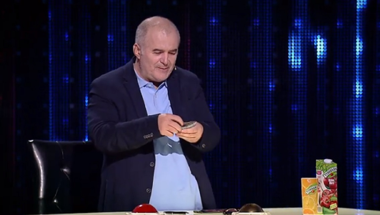 Imediat după prestația primului concurent de la Românii au talent, respectiv un tânăr care a cântat la vioară, Florin Călinescu, impresionat de numărul artistic al acestuia, a scos din buzunar un teanc de bancnote de 100 de lei, cu siguranță peste 40, și a început să…dea dedicații!