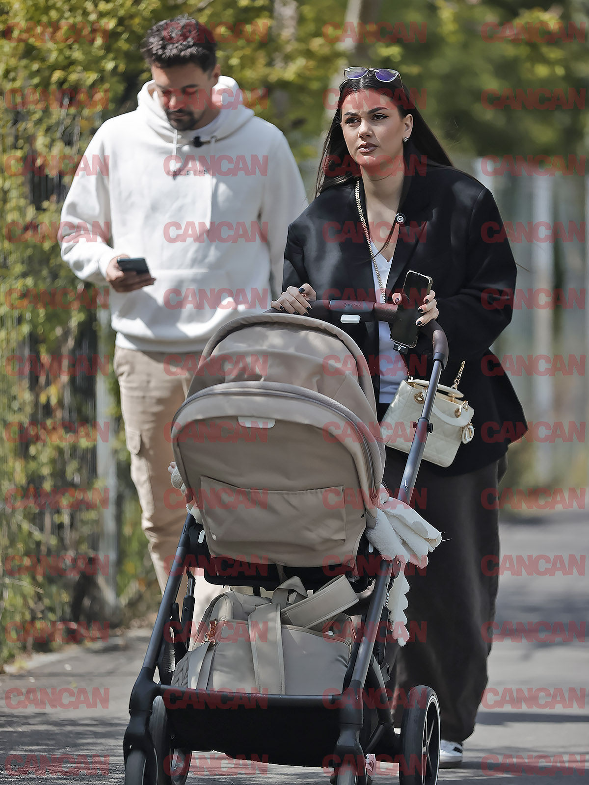 De remarcat că Adrian s-a asortat cu căruciorul și cu rucsacul de ”urgențe” al bebelușului. Poartă pantaloni de un bej similar cu rucsacul și un hanorac deschis la culoare. Măcar atât să facă, pentru că în rest stă pe telefon. Ț, ț, ț! A lăsat-o pe Anastasia să împingă la căruț!