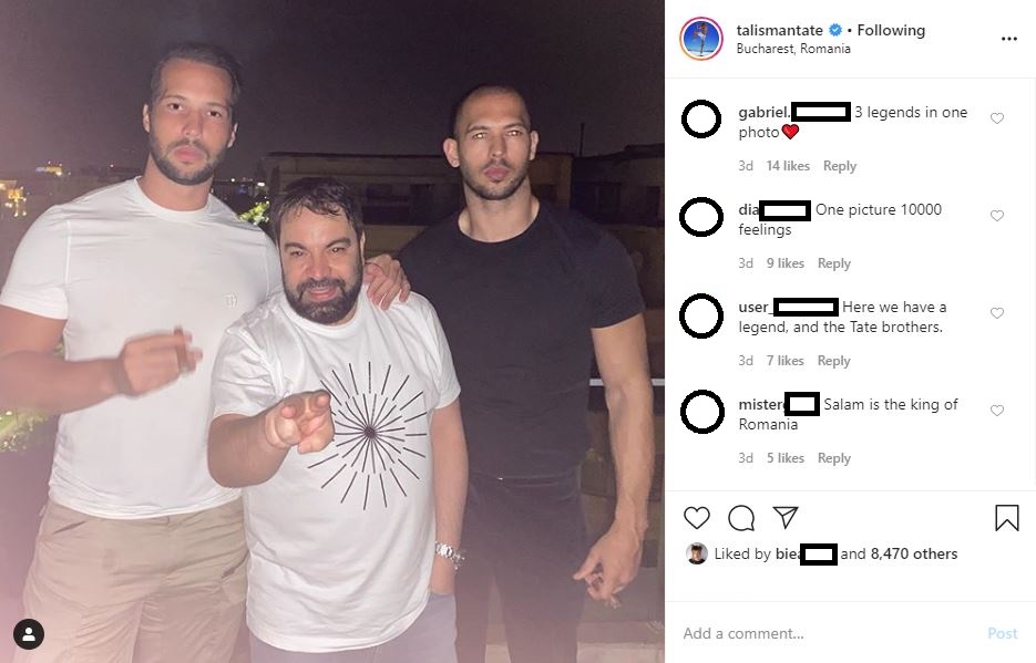 Apropiații și fanii milionarului afacerist au lăsat numeroase comentarii pozitive la postarea acestuia cu celebrul manelist, însă, au fost și câțiva dintre internauți, care l-au criticat pe fostul bărbat cu care s-a iubit Bianca Drăgușanu. “Domnule, sunt dezamăgit de gusturile tale muzicale”, “Trei legende într-o singură poză❤️”, “Regele manelelor” sunt trei dintre mesajele primite de Tristan Tate după ce a postat pe Instagram fotografia alături de Florin Salam și fratele lui, Andrew Tate.