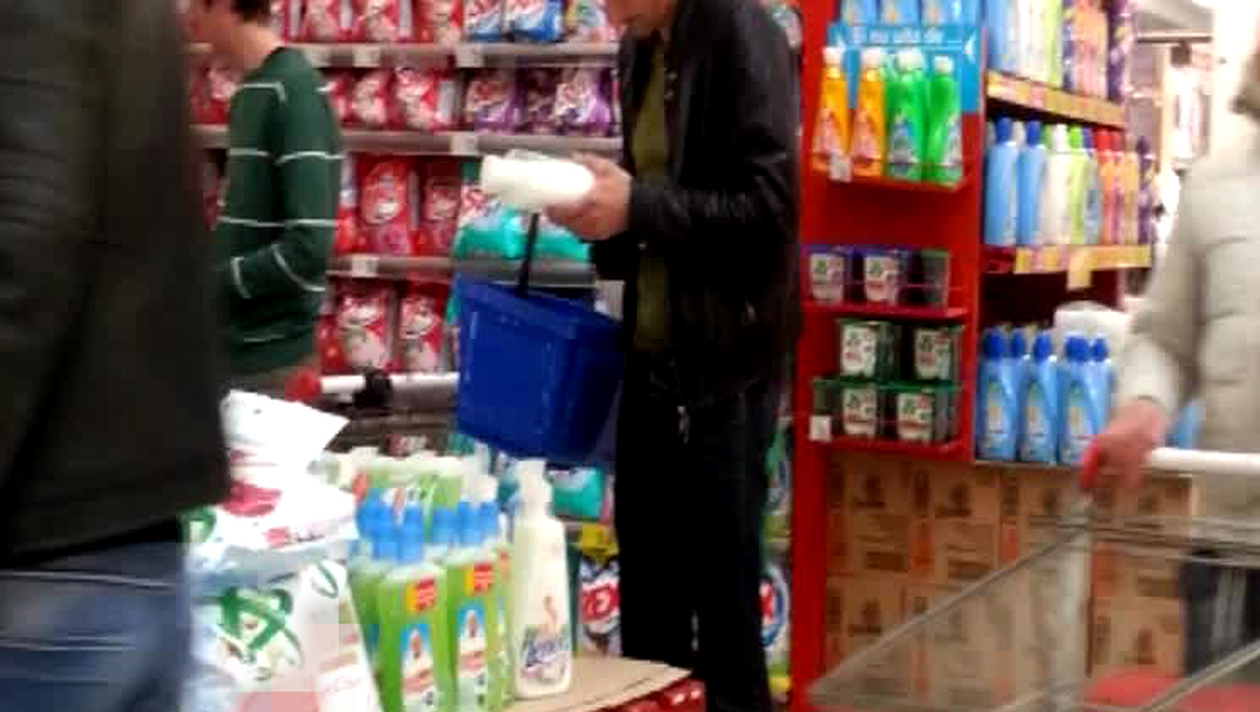 Cu un cos in mana, fotbalistul a inceput sa se plimbe prin hypermarket, pana a ajuns la raionul cu produse de curatenie, acolo unde a stat minute bune pana sa decida ce sa aleaga. Hamutovski se afla in fata unui raft plin cu diverse sortimente de balsam de rufe, ceea ce l-a pus in incurcatura pe actualul portar al Petrolului.