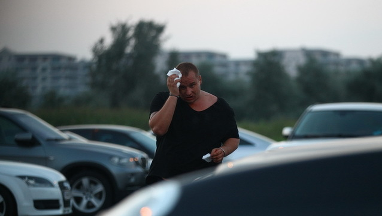 Nu la fel a procedat si fiul lui Adrian Petrache, Dan. Garzile de corp s-au chinuit sa-l potoleasca, iar in invalmaseala creata, Dan Petrache s-a ales cu un cot in nas si a cazut pe jos.