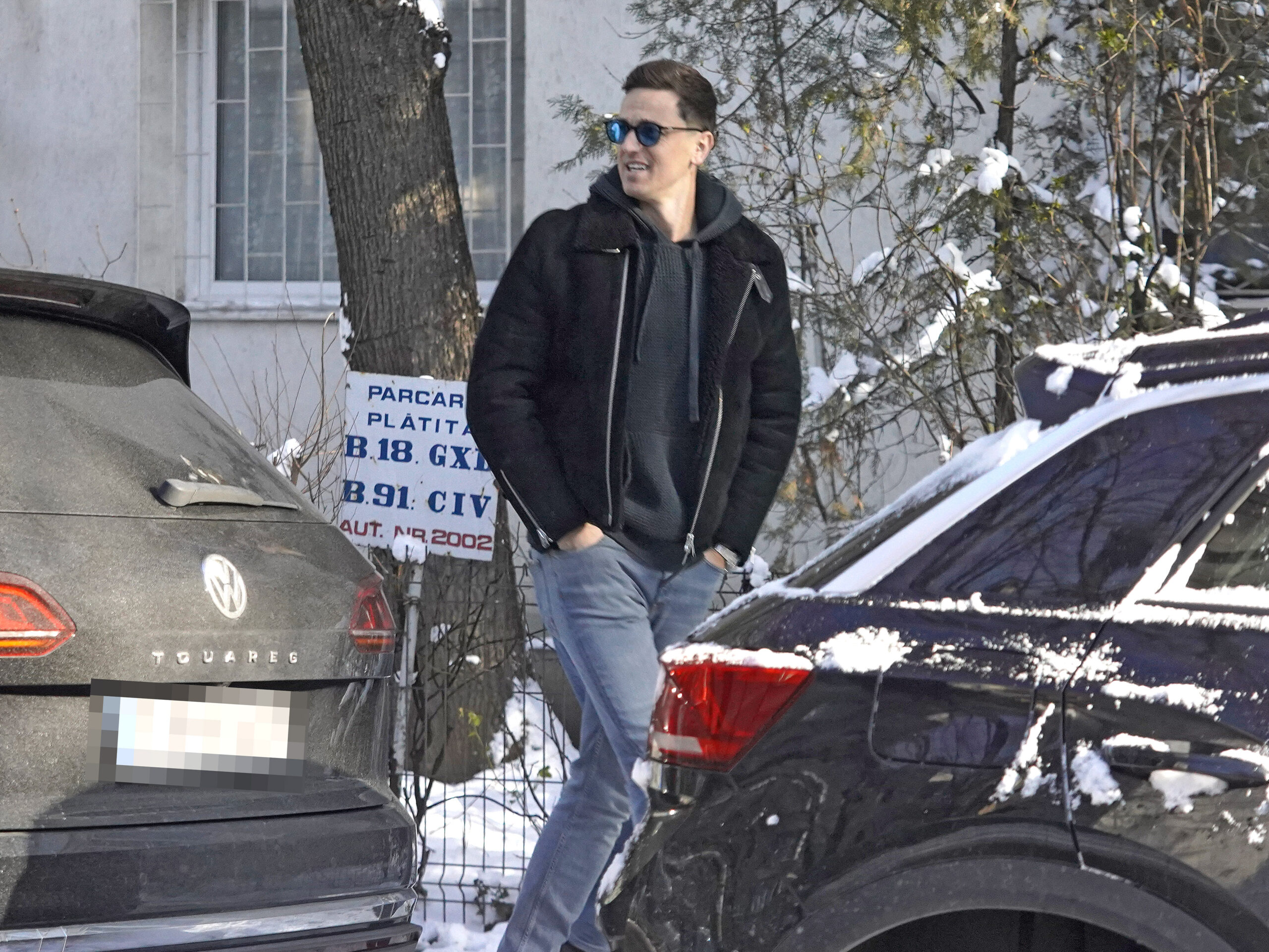 Florin Gardoș și acolitul său coboară din mașină. Se vede că fostul fotbalist e cât se poate de optimist, fața lui e luminoasă. El pare să ignore complet zloata de pe străzile Capitalei, semn că e un om prosper, care nu bagă în seamă aceste inconveniente pe care le observă mai degrabă cei fără posibilități.
