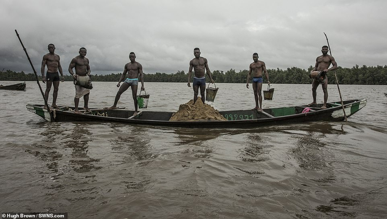 ”Minerii musculoși” se scufundă în fiecare zi pentru a scoate tone de nisip de pe fundul râului Wouri. Fotografiile prezentate în dailymail.co.uk sunt absolut extraordinare. Și trebuie menționat că avești oameni nu sunt angajații niciunei companii. Lucrează independent și, firește, nu au urmărit niciodată să câștige un concurs de bodybuilding.