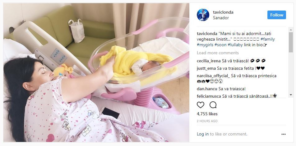 UPDATE: Tavi Clonda le-a fotografiat pe cele două prinţese din viaţa lui, soţia şi bebeluşul născut sâmbătă, în timp ce dormeau şi a trimis pe instagram: „Mami si tu ai adormit….tati vegheaza linistit…”