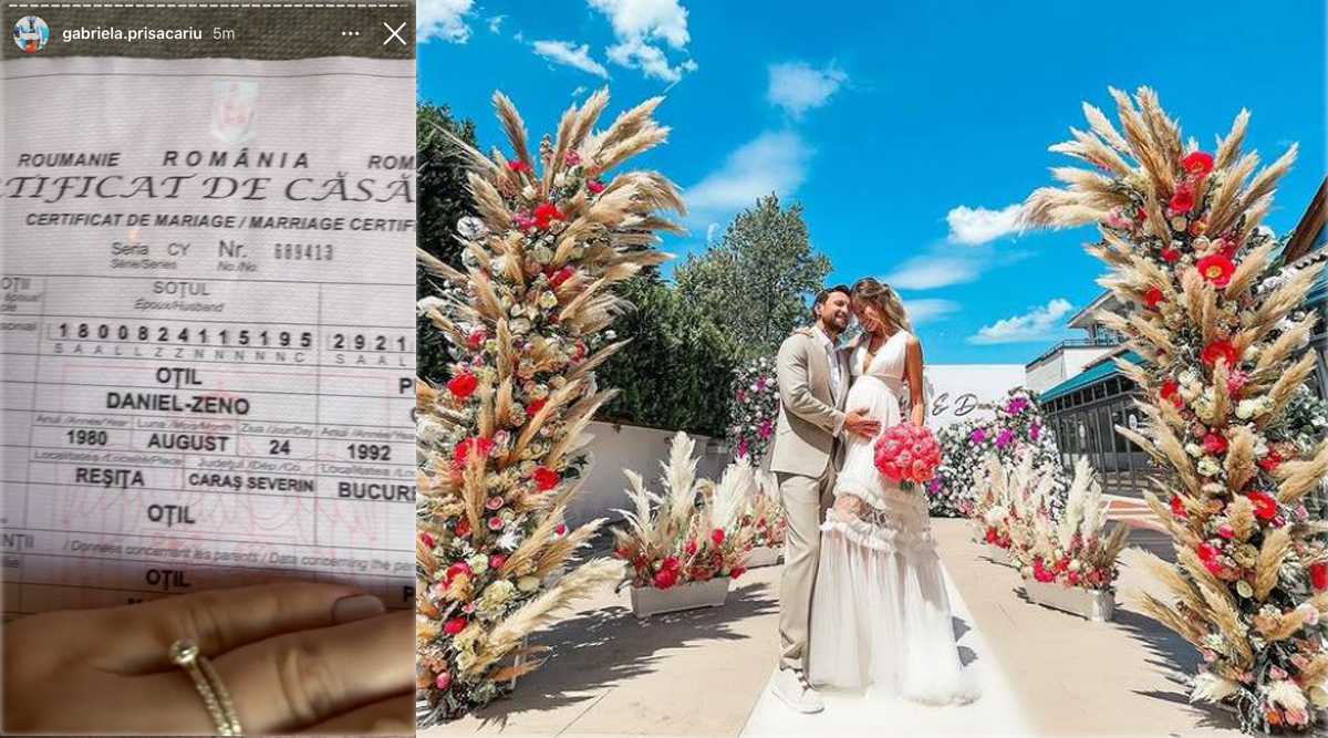 În imaginea încărcată de Gabriela Prisăcariu pe IG Story se poate vedea și verigheta, deși, în mod normal aceasta se pune în ziua cununiei religioase. Însărcinată în ultimul trimestru, vedeta îi va dărui lui Dani Oțil un băiat – vestea a venit în timp ce se aflau în sejurul din Dubai.