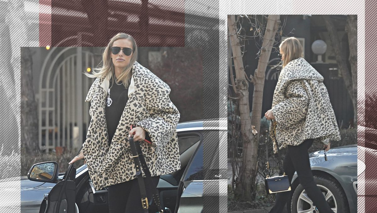 Avea să coboare din mașina ei chiar în dreptul localului „The Grill”, unde Dani Oțil produce bani pentru bunăstarea familiei. A tras BMW-ul lângă bordură, apoi a coborât. Cum s-a prezentat doamna Oțil la „inspecția” în care pare să îl fi înlocuit pe soțul ei? O pereche de jeans negri, un top în aceeași nuanță și o pereche de bocanci Prada în valoare de 4.000 de lei, însă piesa de „rezistență” a constituit-o geaca „animal print”, oversized.