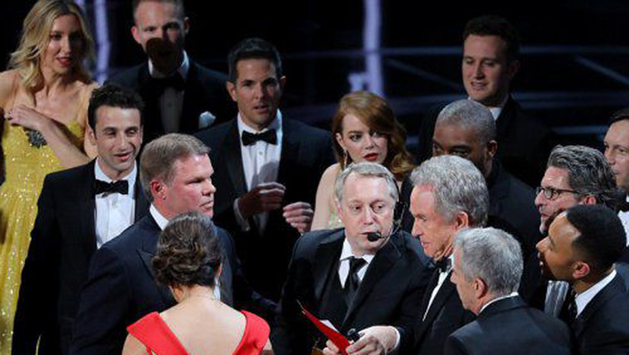 Marele câştigător este, de fapt, Moonlight, legendarul actor Warren Beatty explicând că a greşit plicurile care conţineau numele câştigătorilor. Astfel, echipa La La Land a fost nevoită să coboare de pe scenă şi să înmâneze statueta echipei de la Moonligh care au primit premiul în stare de şoc.