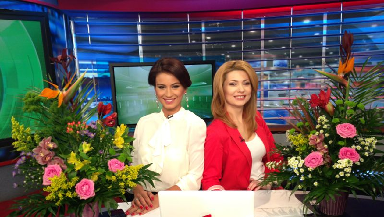 Prezentatoarele Antenei 1 au avut parte de o surpriza de proportii de "Ziua Femeii". Geanina si Mihaela au gasit platoul plin cu cosuri cu flori, primite in dar de la colegi.