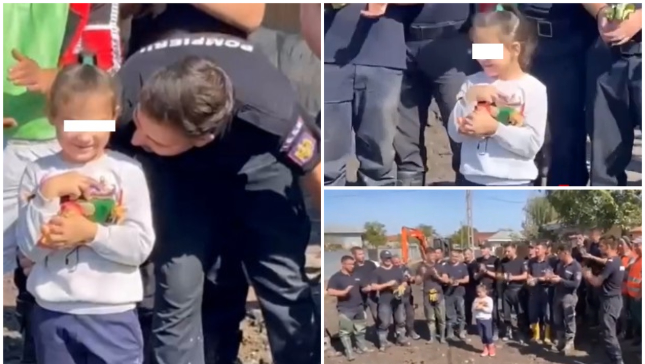 O fetiță din Pechea a avut, însă, un motiv de bucurie. A fost ziua ei de naștere, a împlinit 6 ani și nici prin cap nu-i trecea că va avea parte de o surpriză frumoasă. În mijlocul dezastrului lăsat de inundații, pompierii i-au fost aproape și au făcut-o fericită de ziua ei.