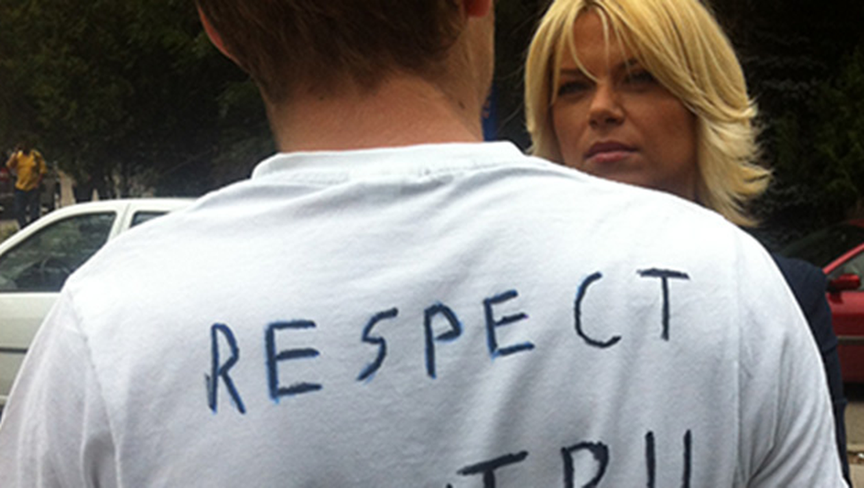 El a imbrăcat un tricou pe care a scris, cu litere de-o schioapa, „RESPECT PENTRU MUNTENEGRU” si a venit astfel imbrăcat la Institutul de Medicină Legală din Bucuresti, acolo unde se află, in acest moment, trupurile celor 18 persoane care au decedat in cumplitul accident.
