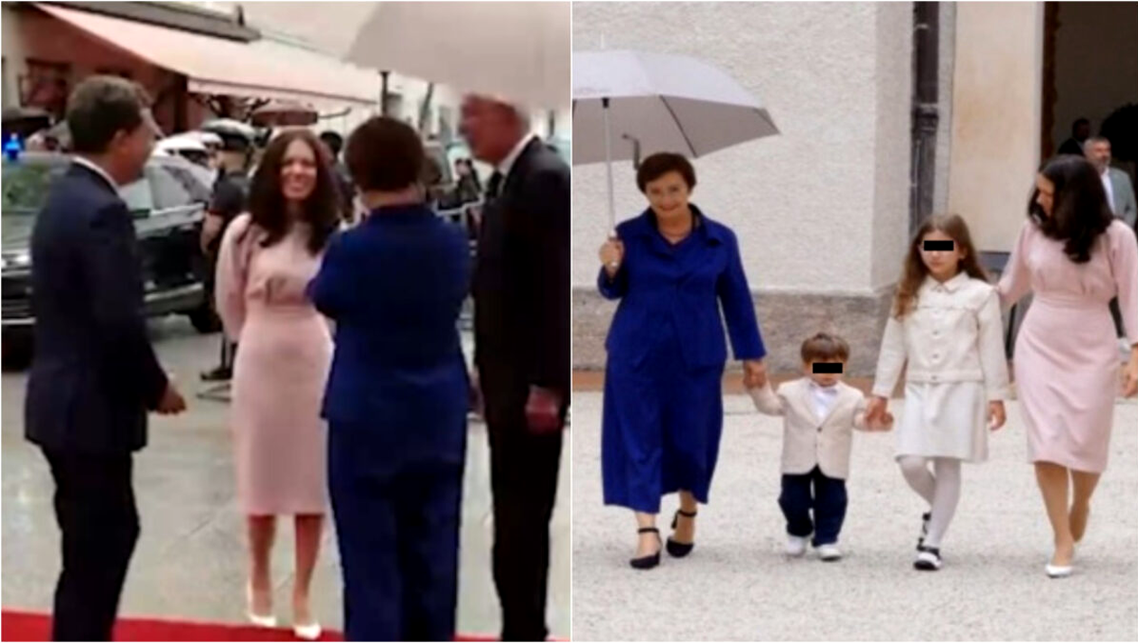 Șeful statului și familia sa au marcat o primă vizită externă cum nu se putea mai bine. Emoționată, Mirabelă Grădinaru a pășit pe covorul roșu din fața palatului Salzburg Residenz îmbrăcată într-o ținută roz pudră, la care a asortat o pereche de pantofi alb. Cei doi copiii ai președintelui au fost și ei îmbrăcați în ținute albe elegante. De lângă cei trei nu a lipsit soacra lui Nicușor Dan, care a fost numai ochi și urechi la cei mici.
