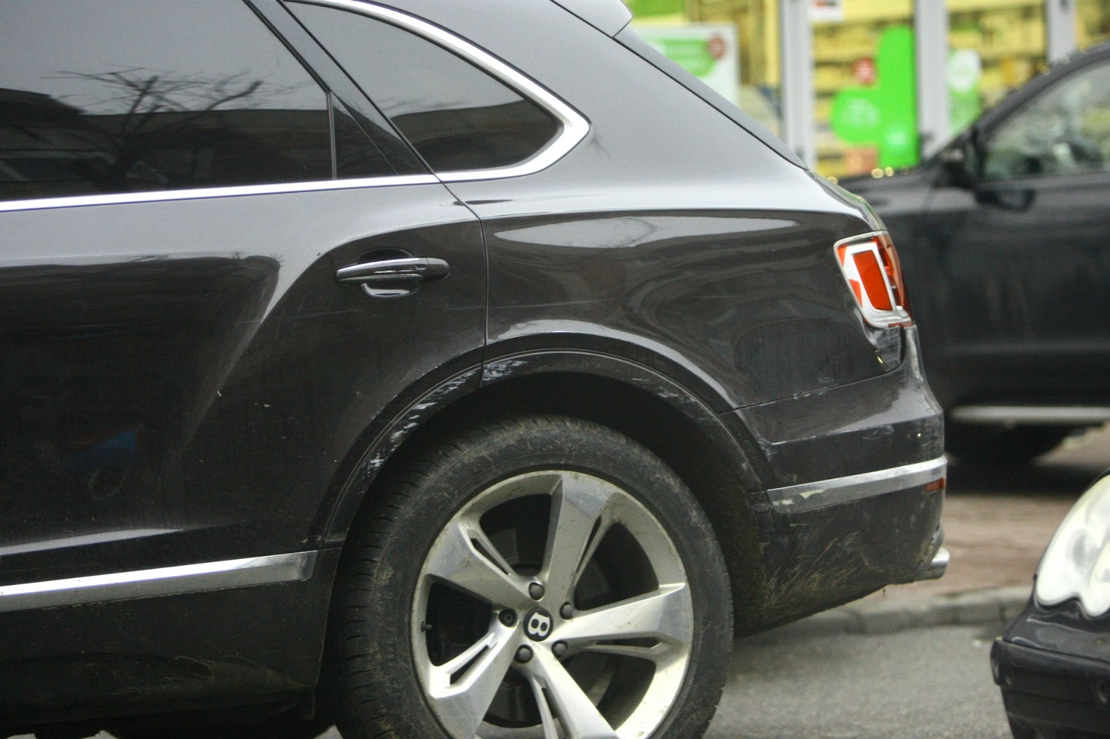 După cum se poate observa în imaginile de mai jos, Bentley-ul Bentayga de un sfert de million de euro al lui Gigi Becali s-a ales cu niște zgârieturi de toată frumusetea, pe aripa stânga spate.