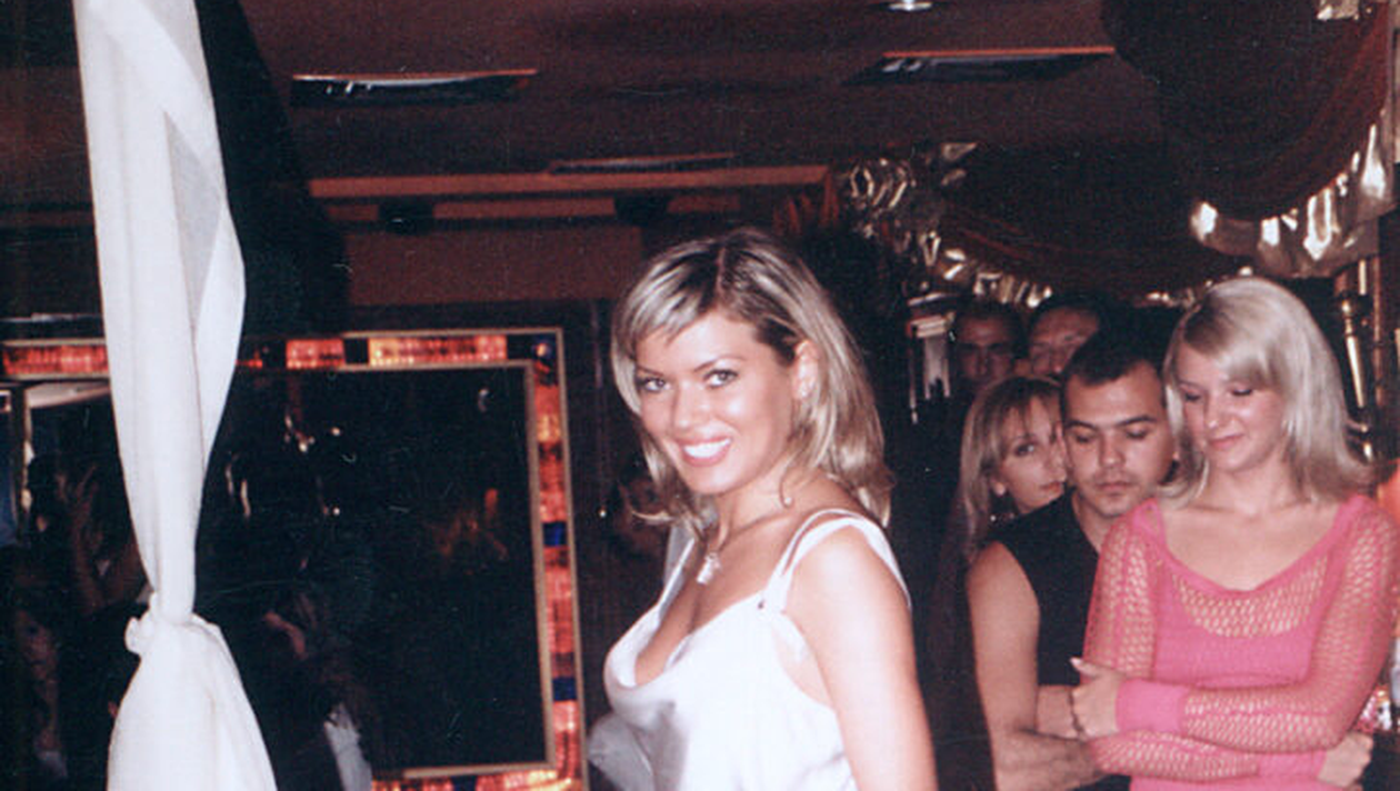 Imaginea surprinsă cu mai bine de 20 de ani în urmă este genul de fotografie care nu are nevoie de explicații lungi, dar care, privită atent, spune o poveste întreagă. Gina Pistol nu apare ca „încă o fată frumoasă” rătăcită într-un club bucureștean, ci ca punctul de echilibru al întregii scene. Rochia albă, aparent simplă, este aleasă impecabil, se așază perfect pe corp și scoate în evidență o siluetă care atrage fără ostentație.