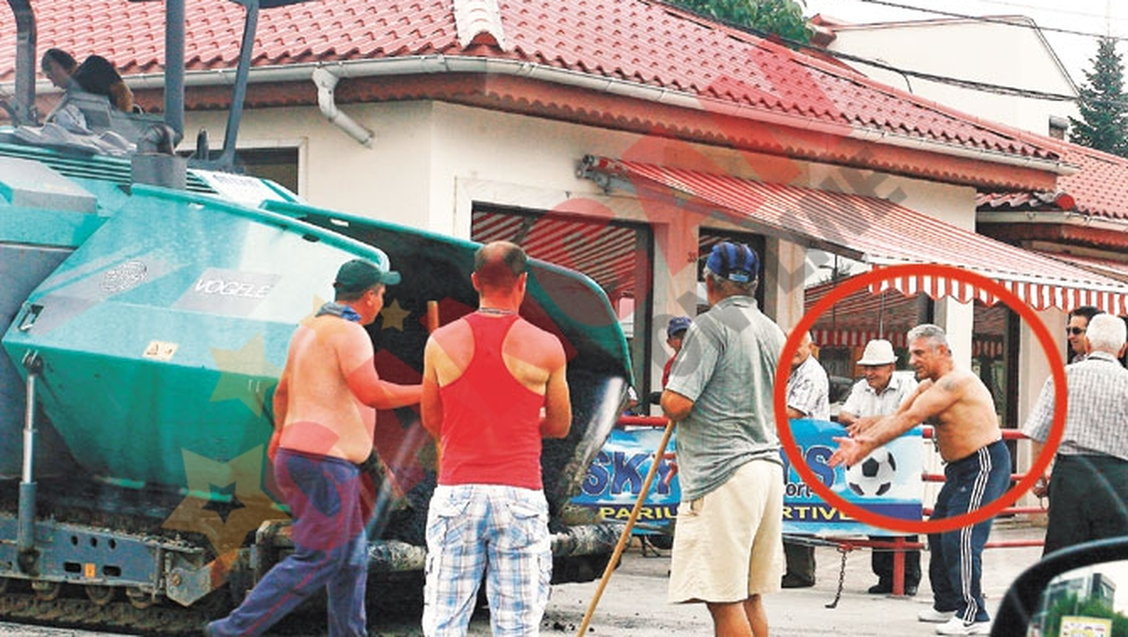 Cunoscutul impresar a ales o tinuta de santier si a coordonat de aproape fiecare miscare a oamenilor care ii asfaltau strada, venind cu nenumarate indicatii pretioase.